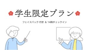 学生さんに嬉しい特別プラン(フェイスパック 付き+ 14時チェックイン)を期間限定でご用意しました✨